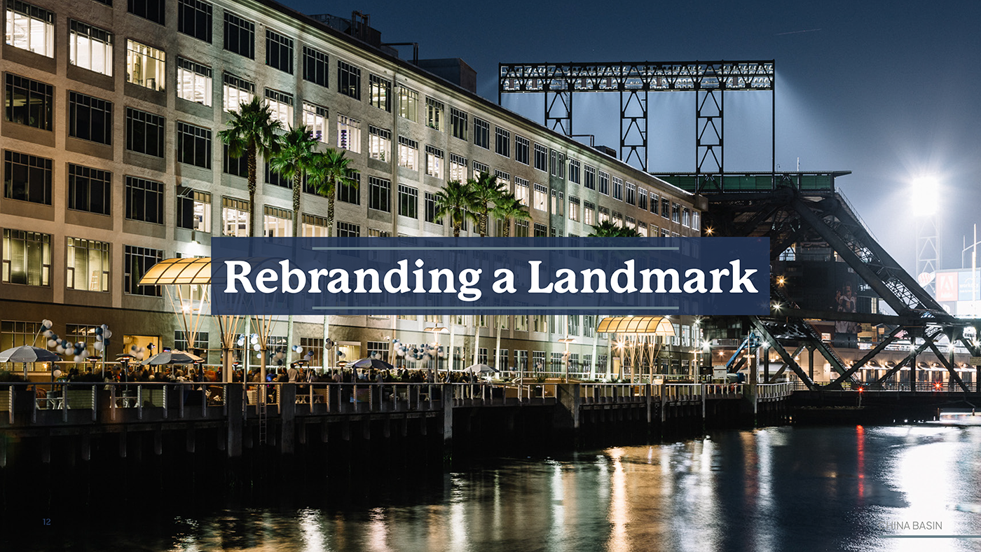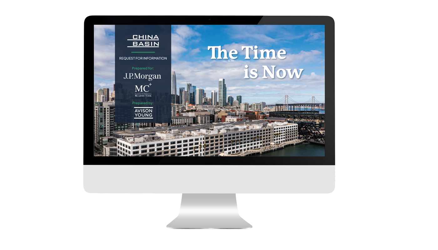 Presentation strategy and visual storyteller lead for China Basin a 700,000 sf of space asset located in San Francisco, CA. I led the RFP and presentation efforts by creating a timeline, organizing team meetings, collaborating with the marketing team to develop materials, and working on the marketing strategy with the broker team. We delivered a high-quality RFP response, presentation, and marketing materials for the meeting with JP Morgan.